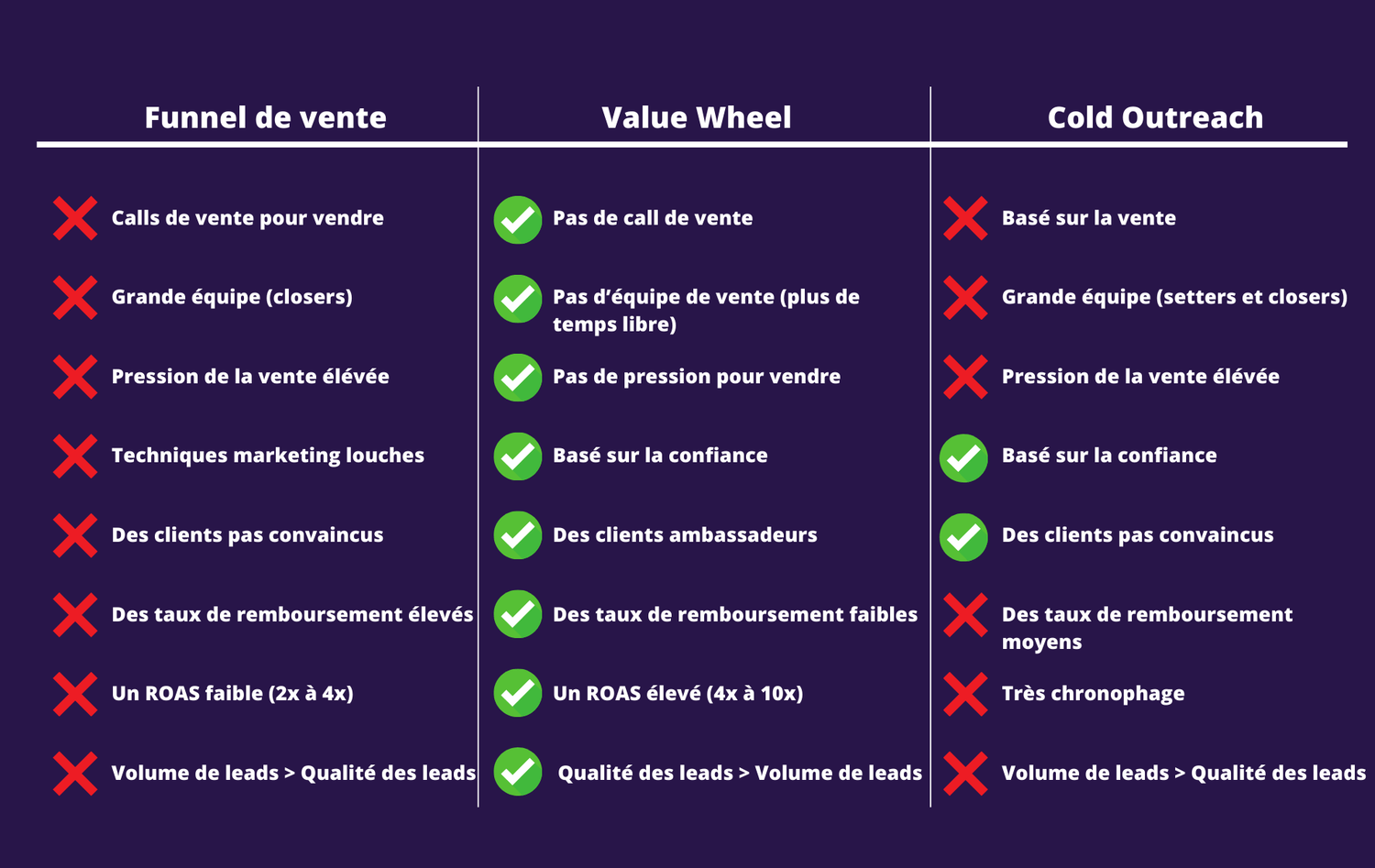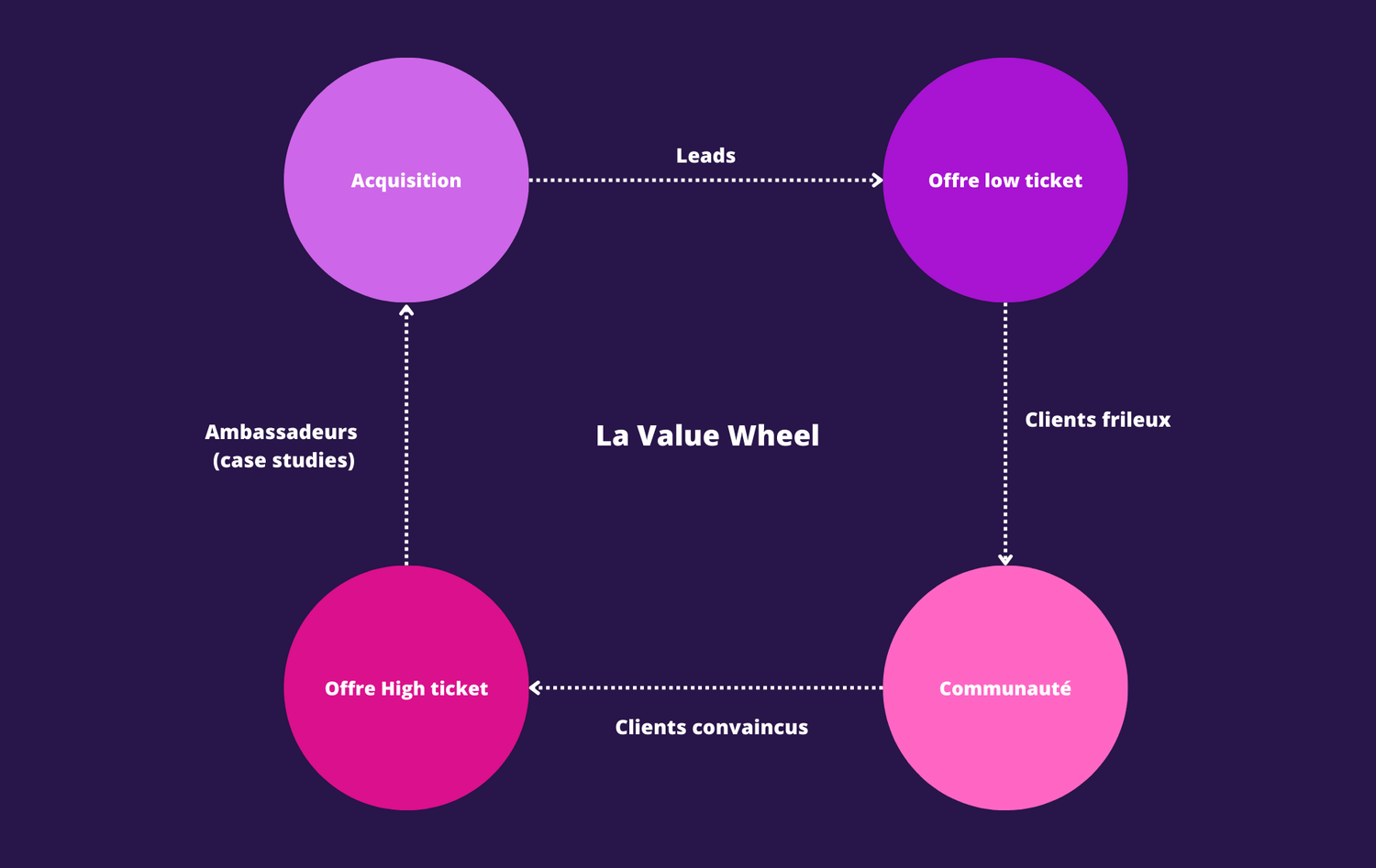 La value wheel remplace les funnels de vente. Le game a changé, les gens n'accordent plus leur confiance aussi facilement.